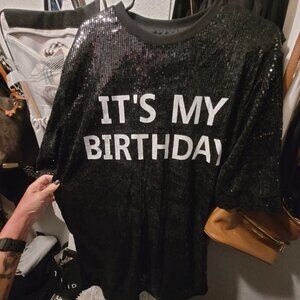 "It's my birthday" mini dress NWOT I missed wearing it on my birthday!!! So I don't need it anymore. Full of sequence so cute!!!