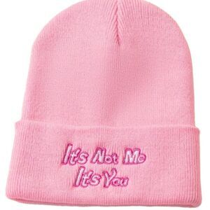 New! “It’s not me, it’s you” beanie. Pink beanie hat with embroidered lettering on front cuff. In unopened packaging. Bundle to get a discount.