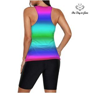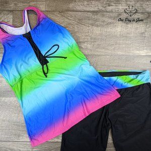Itsmode Rainbow Multicolor Swim Tankini and Shorts Set Size Medium