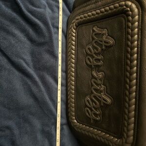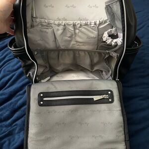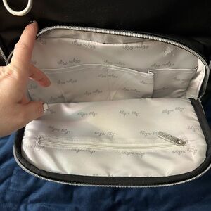 This is a black itsy ritzy backpack that I bought from their website. It has tons of pockets and more! There is a stain in the front pocket from where I spilled some glue.
