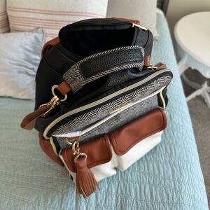Old style Boss diaper bag from Itsy Ritzy in near perfect condition. A few worn spots on the bottom of the bag that aren’t visible unless bag is turned upside down. Comes with the changing mat (which has never been used).