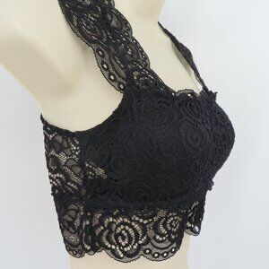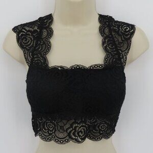 Itzon Women One Size Fits Most OSFM Black Flower Floral Lace Bralette Padded
