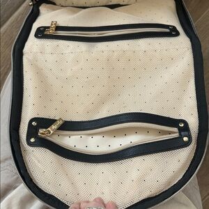 Please note this bag is used and shows some signs of wear but has a lot of life left. Zippers all work. Faux leather is in excellent shape.