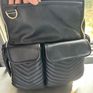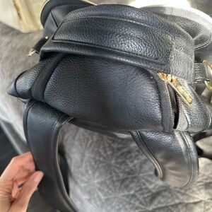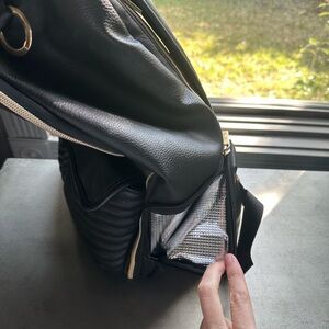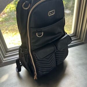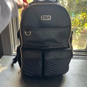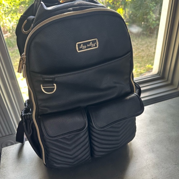 Chic and versatile backpack by Itzy Ritzy. Features sleek black design with gold accents. Ideal for daily use.