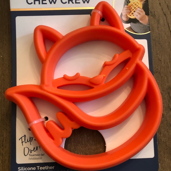 Sore gums are no match for this Fox teether. Easy to grasp and gentle on gums. Top rack dishwasher safe! 100% food grade silicone.