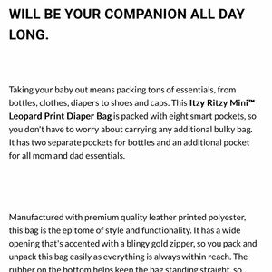 Chic leopard print backpack by Itzy Ritzy. Features spacious compartments and stylish design.
