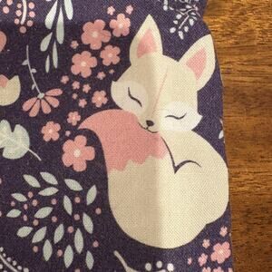 Print: Fox and floral pattern with small birds on a dark purple/navy background