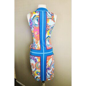 Super cute retro inspired dress with a collar and wrap details. Floral/Paisley pattern on a lightweight jersey fabric perfect for the hot summer days. This dress is in great preowned condition! please reference images for measurements and condition.