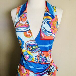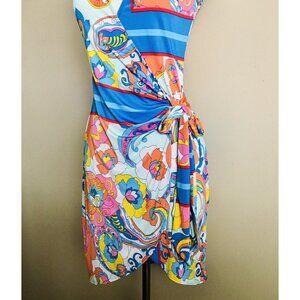 Itzy Sleeveless Jersey Wrap Mini Dress Floral Paisley Print Size Medium