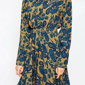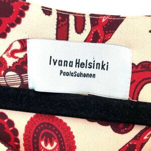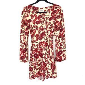 Ivana Helsinki Size 8 Red Paisley Floral Long Sleeve Flare Mini Dress Elastic