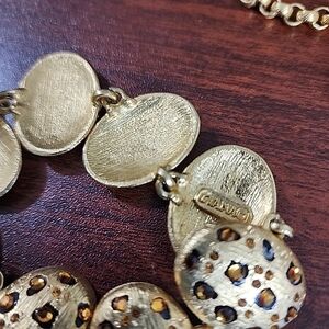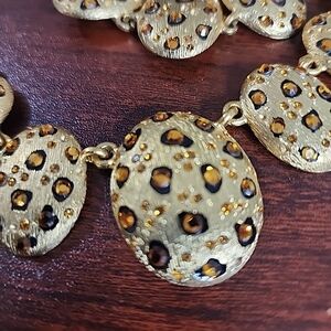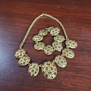 Ivana Trump Gold Metal Plate Animal print necklace and Bracelet set
