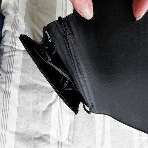 Ivana Trump Shoulder Bag Box Purse Book Design Black/Gold Satin. Pre-owned Good condition