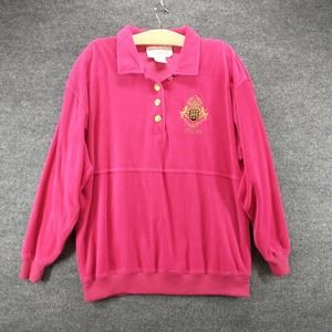 Ivana Womens Fleece Polo Shirt Pink Large Pullover Logo Embroidered Vintage