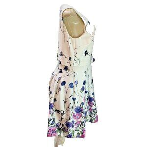 Ivanka Trump 12 White Floral Lined Pleats Side Pockets Zip Back Sleeveless Dress