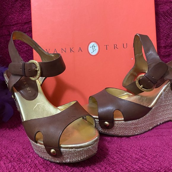 Ivanka Trump Sandal Platform heel in Brown Leather Good Condition Size 8
