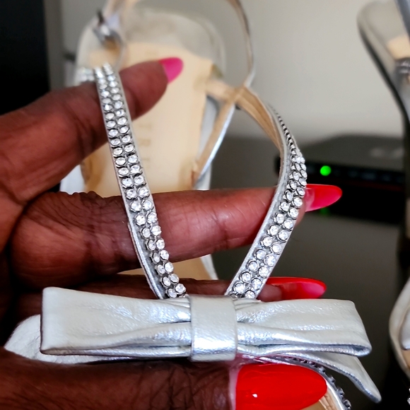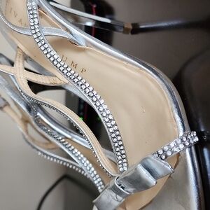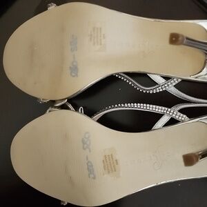 Silver and rhinestones sandals, leather sole, size 8.5. Worn once, slight scratches on the right heel.