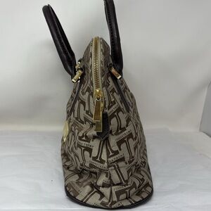 Ivanka Trump Ava Grey Brown Logo Handbag top handle gold tone hardware