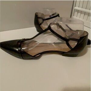 Chic black flats with elegant T-strap design. Perfect for versatile styling. Great condition with little wear! Pretty shoes!!