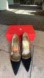 Chic silver leather pumps by Ivanka Trump. Ideal for stylish events. high-heeled pumps, specifically black suede pointed-toe pumps with metallic bronze-toned accents. In great used condition