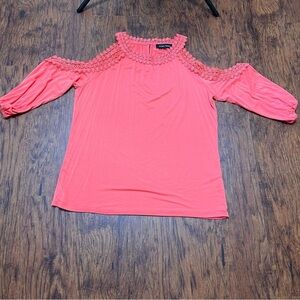 Ivanka Trump Cold Shoulder Top Coral Pink Blouse, Women’s Boho Top, Size Small