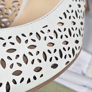Ivanka Trump Comfy Women Ivory Lazer cut Leather Peep Toe High Heel Pumps 9M