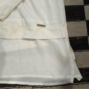 This elegant tunic by Ivanka Trump showcases a relaxed fit with long sleeves, perfect for a chic and comfortable look. The cream color and asymmetrical design add a touch of sophistication, making it a versatile choice for any occasion. Crafted from lightweight fabric, it ensures comfort and style throughout the day.