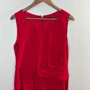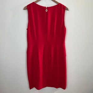 Ivanka Trump Dress 14 Red Sheath Ruffle Layered Pleated Sleeveless Knee Length