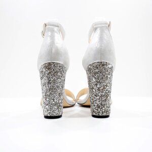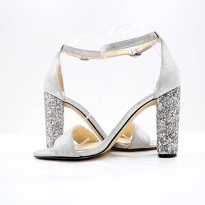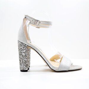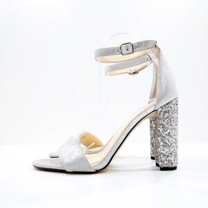 Ivanka Trump Emalyn Silver Leather 4" Glitter Block Heel Dress Sandals - 8