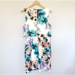 Ivanka Trump Floral Print Sleeveless Stretchy Summer Scuba Dress Sz 14