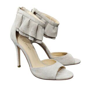 Ivanka Trump Herlle Suede Heel Open Toe Ankle Strap Tan Pumps Size 6 1/2M