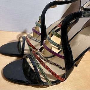 Ivanka Trump ITHAYZE8 Strappy Black Colorful Leather High Heels Sandals Size 9.5