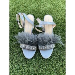 Ivanka Trump KASIE Pewter Multy Suede Jeweled Ostrich Feather High Heels Size 8M