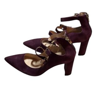 Ivanka Trump Kamon burgundy suede ankle straps pointed pumps back zipper 8M