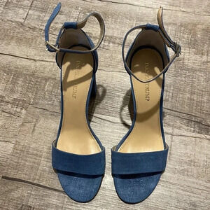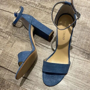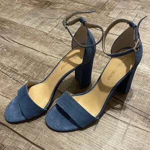 Ivanka Trump - Klover Sandals - Blue Chambray Suede Block Heel - Size 9M - GUC!!