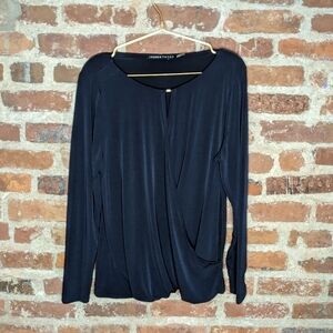 Ivanka Trump Large Deep Blue Long Sleeve Wrap Front Blouse w/ Gold Accent