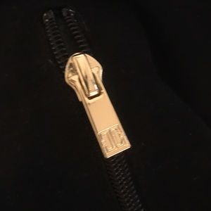 @swtwine518 yes black zipper with gold buckle and nope just the bottoms are a little dirty!