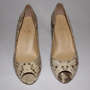 Ivanka Trump Peep-Toe Leather Snake Python Wedges