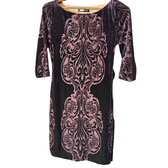 Ivanka Trump Purple Medallion Damask 3/4 Sleeve Velvet Burnout Whimsigoth Fairy