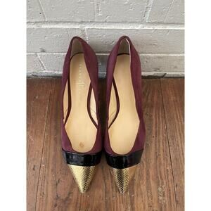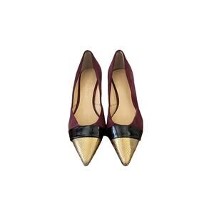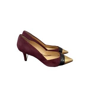Ivanka Trump Purple Suede with Black and Gold Tip Pointed Heels Size 7M