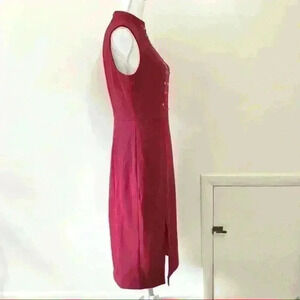 Ivanka Trump Red Mock Neck Beaded Front Slit Midi Dress
