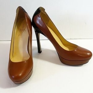 Ivanka Trump Tuxedo Style Stiletto Heel Sz 9.5 Black Tan Patent Leather Formal