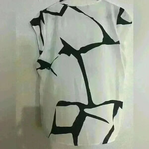 Ivanka Trump White & Black Abstract Print Sleeveless See Thru Blouse Size S/P. This very beautiful blouse is in Excellent but Used Condition. Retail priced at $35 you can grab these for just $20!!