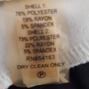 Shell 2: 73% polyester, 22% rayon, 5% spandex.