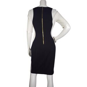Ivanka Trump Women's Size 4 Side Pleat Sheath Dress Black White Sides Back Zip