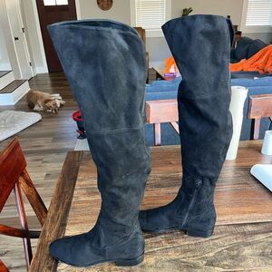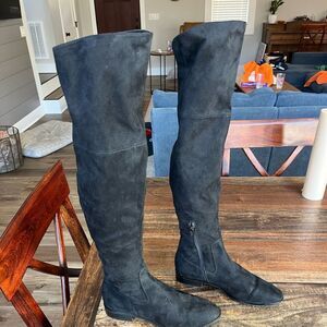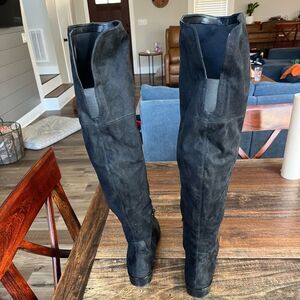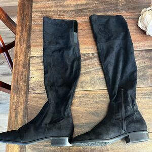 Beautiful sexy over the knee designer black suede boots size 8.5M low heel