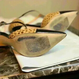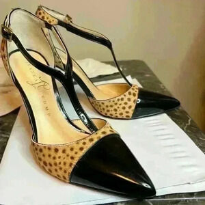 Ivanka Trump black patent leather and animal print T-strap stilettos. 4” heel. Worn once. No visible signs of wear other than the soles. Size 6M