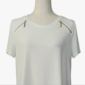 Ivanka Trump Ivory Zipper Detail Layered Hem Pullover Blouse Size M