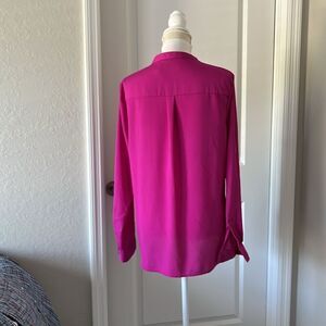 Ivanka Trump Magenta Pink Popover Blouse Roll Tab Sleeves w Slide Buckle Sz M