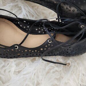 Ivanka black leather ankle tie flats NWT size 9