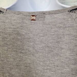 Ivanka Trump Women’s Grey Long Sleeve Top Black Lace Trim Size Small
